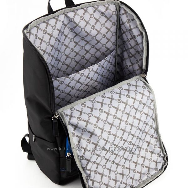 Рюкзак состоит из просторного отделения, внутреннего, 2 передних и 2 боковых карманов. Внутренний карман с легкостью вмещает ноутбук. Основное отделение закрывается выворотно с помощью 2 молний. Передний верхний карман фиксируется на скрытых магнитных кнопках.