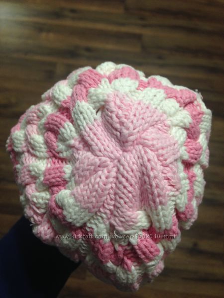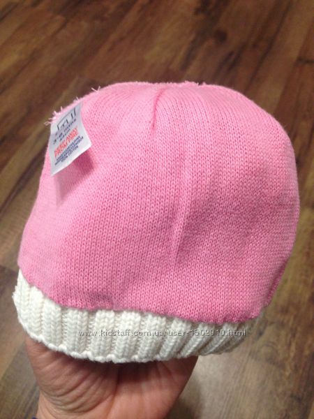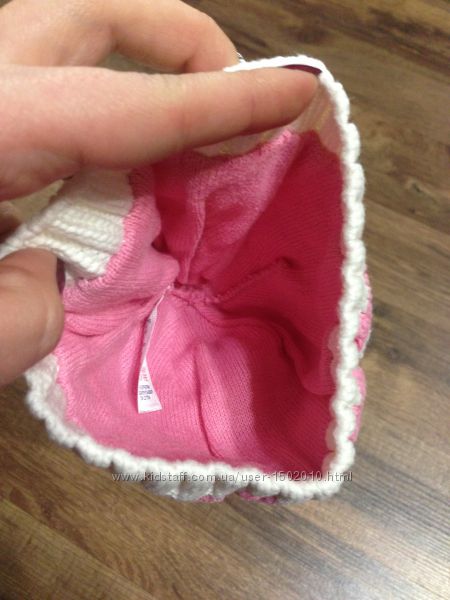 Очень красивая деми шапочка в идеальном состоянии!Шапочка полностью из 100% хлопка,верх-вязанный,внутри,подкладка,на бирке указан размер 44,3-6месяцев,но можно носить дольше,реальные замеры:обьем 17-25см,