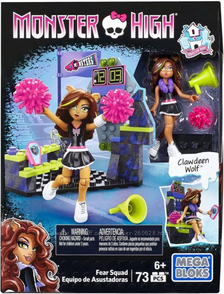 Это день большой игры, и Клоддин Вольф завывает для хозяев поля! Постройте группу страха Мега Блоком Monster High и помогите Clawdeen поднять школу до победы. Одетый в ее когтистый страшный наряд, Клодин может ударить по трибунам или нанести смертельную позу для победы! Переверните стену табло, чтобы показать скрытую боевую экипировку Clawdeen.