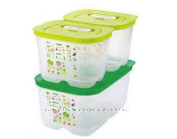 1 .Умный холодильник 1,8 л высокий2. В набор входит контейнер 1,8 л низкий (1 шт.) +1,8 л высокий (2 шт.) «Умный холодильник» - линия революционных контейнеров, созданных сохранить овощи и фрукты в холодильнике в оптимальных условиях, сохраняя дольше их свежесть. Контейнер «Новый Умный холодильник» относится к целой серии изделий «Умный холодильник». Отличительной чертой новой серии контейнеров «Умный холодильник» является специальная система циркуляции воздуха, заключающаяся в слайдере на крышке, которая помогает регулировать атмосферу в контейнере, создавая баланс между потоком кислорода и выделением продуктами углекислого газа. Благодаря оптимизированной системе выхода воздуха, выходные отверстия скрыты под слайдером и предусмотрительно объединены в элегантном дизайне. Слайдер может быть установлен в 3 позициях: открытый наполовину, открытый или закрытый. Каждый шаг позиции промаркирован под слайдером. Чрезвычайно удобная крышка контейнера «Новый Умный холодильник» очень легко открывается и закрывается. Решетка обеспечивает циркуляцию воздуха вокруг продуктов. Благодаря решетке, контейнеры могут быть помещены друг на друга без помехи системе воздушной вентиляции. Рисунок решетки удобен для чистки и сушки. В стенку основания вмонтированы стикеры визуализируют правильное использование системой проветривания с тем или иным продуктом. Благодаря прозрачному основанию, содержимое контейнера хорошо просматривается, а гладкий, блестящий и современный дизайн контейнеров «Новый Умный холодильник» не оставят равнодушным Вас и ваших домашних. Основания контейнеров удобно помещаются друг в друга, что экономит место на Вашей кухне в то время, когда контейнеры не используются. Благодаря воздушной системе проветривания зелень, фрукты и овощи находятся в оптимальной атмосфере и гораздо дольше остаются свежими. Возможности использования: В контейнерах «Умный холодильник», объемом 1,8 л – удобно хранить самые разнообразные овощи, фрукты, зелень и ягоды. Слайдер в закрытой позиции – «легкое дыхание»: Цуккини, спаржа, редис, грибы, огурцы, сельдерей, морковь, свекла, разнообразные ягоды, виноград, ананас. Слайдер открыт наполовину: - «среднее дыхание»: все виды салата, лук-порей, бобовые, цветная и белокочанная капуста, фенхель, свежая трава, перец, паприка, зеленый лук, цитрусовые, яблоки, персики. Открытый слайдер – «тяжелое дыхание»: стручковый горох, артишоки, брюссельская капуста, шпинат, кукуруза, брокколи Важно! Изделие не предназначено для хранения содержимого в морозильной камере.