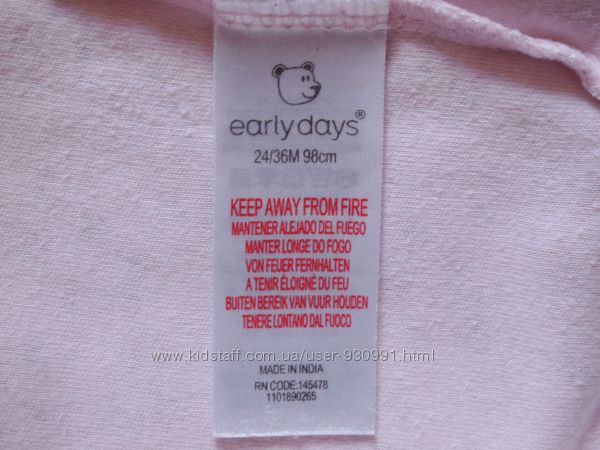 24-36 месяца Бодик Early Days, б/у. Хорошее состояние, без пятен. Длина от плеча застегнутого 47 см, ширина 28 см.НА ОДЕЖДУ ДЕЙСТВУЮТ ТАКИЕ СКИДКИ: