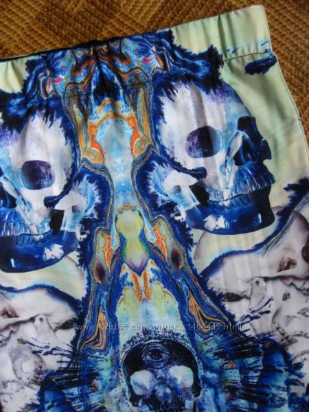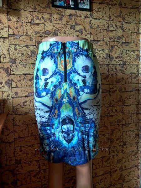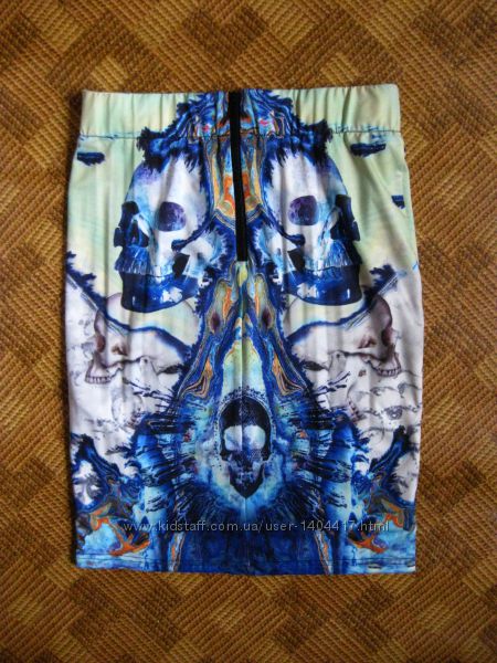 стильная юбка с неординарным принтом - черепа - Evil Twin - размер S - наш 40-42рр. - б/у - в отличном состояниисостав: 93%-полиэстер, 7%-эластан - отлично тянется