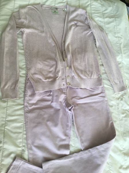Продам комплект для девочки- брючки и кардиган. Брюки укороченные и зауженные книзу, длина 7/8. Посадка высокая. Кардиган лёгкий, хлопковый. Вещи разных фирм, но хорошо сочетаются друг с другом. Цвет пепельно-розовый. Кардиган - длина рукава от плеча 53, ПОГ 40, длина по спине 50Брюки- ПОТ 34, есть утяжка, длина по внутреннему шву 56, по внешнему 81, ПОБ 42