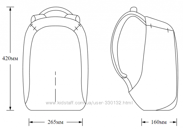 - Размеры рюкзака: 45 х 30 х 16,5 см