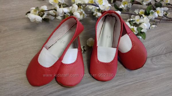 Новые, прекрасного качества чешки, материал: верх - высококачественный кожзаменитель, ничуть не хуже кожи; подошва -натуральная кожа. Очень красивые, нарядные чешки, красного цвета!