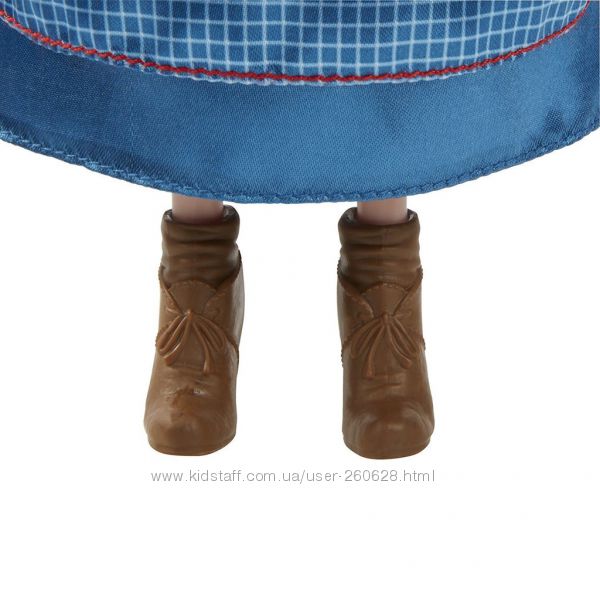 У куклы длинные волосы, убранные в элегантную прическу. На ней надет знаменитый повседневный наряд принцессы: голубое платьице и пара ботинок. Кукла оснащена несколькими точками артикуляции, позволяющими расширить амплитуду движений во время игр и постановочных сценок.