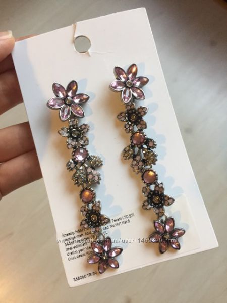 Очень красивые серьги из метала, украшенные гранеными стразами в форме листьев, прекрасно дополнят ваш вечерний наряд. Новые, куплены в фирменном магазине H&M в Стамбуле,с бирками и ценником.