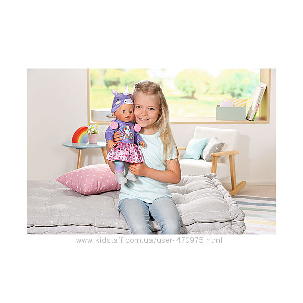 Встречайте новинку от создателей Baby Born! С новой куклой серии «Нежные объятия» – МИЛЫЙ ЕДИНОРОГ играть стало еще интереснее и веселее, ведь у нее теперь очень нежное тело, которое так приятно обнимать! Малышка – самая настоящая модница, любит нарядные платья и украшения.Модный наряд в стиле единорога понравится каждой девочке! В наборе шапочка, платье, обувь и леггинсы. Известные функции запускаются намного проще, чем когда-либо Вместо левой руки, нажмите на мягкую грудь Baby Born и она заплачет Надавите на мягкий животик, чтобы малышка сходила на горшок Очень удобное и легкое переодевание благодаря подвижным ручкам и ножкам Ручки новой Baby Born могут двигаться не только вертикально, но и горизонтально Не требует батареек Функциональность:Пьет из бутылочки Ест кашу Мочит подгузник Ходит на горшок Плачет настоящими слезами Закрывает глазки Подвижные ручки и ножки С ней можно купаться В комплект входит:Кукла Baby Born серии«Нежные объятия» высотой 43 см, Аксессуары: 1 порция кашки, тарелочка с ложкой, подгузник, пустышка, горшочек, цепочка к пустышке, бутылочка, браслеты, ID-карточка Рекомендовано для детей старше 3 лет.