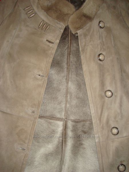 Стильная женская натуральная дубленка. Шикарный палевый цвет!! Теплая, легкая и комфортная!! Норковый воротник стоечкой. Передняя планка и рукава инкрустированы мелкими стразами. Боковые карманы. Рукав-реглан. Длина рукава регулируется. Страна-производитель Турция. Состав - 100% натуральная замша. Отличное качество!!Размер в наличии: L\XL. Замеры: длина рукава - 65 см, ширина (от проймы до проймы) - 54 см, ширина по талии - 56 см, ширина по низу - 63 см, длина по спинке - 87,5 см.