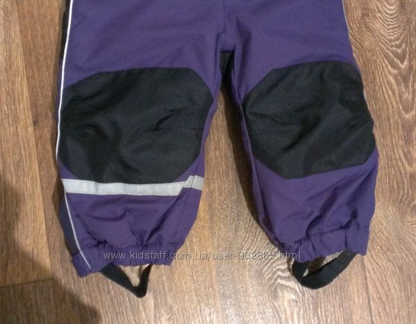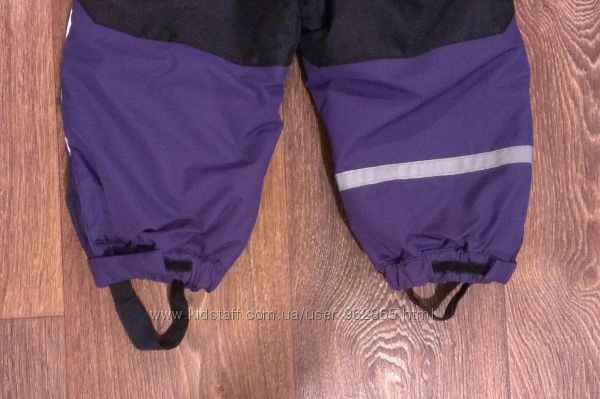 Внизу на штанинах есть резиновые штрипки для лучшей фиксации. Усиленная защита ткани на коленках и ягодичной части. Светоотражающие детали.