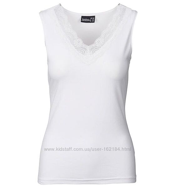 Фото 4. Нова майка, топ Janina з мереживом. Ніжне мереживо, білосніжний колір, щільний якісний трикотаж.