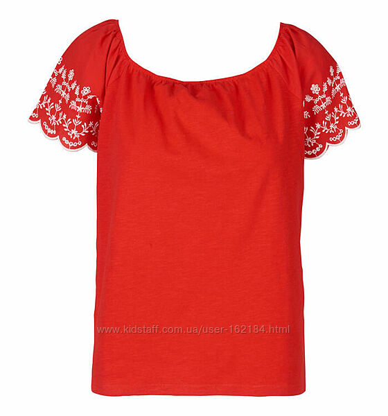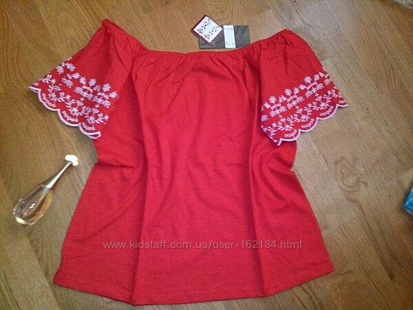 Яркий цвет, нежная вышивка. Благодаря резиночкам отлично сидит и подчеркивает плечи