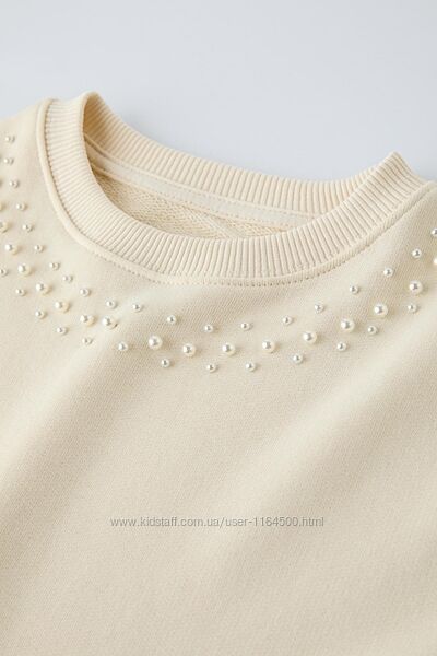 Ошатний світшот із штучними перлинами для дівчинки. Тканина двонитка.Брендовий магазин ZARA Іспанія