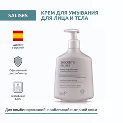 Salises Foamy Soap-Free Cream от Sesderma - ежедневное очищение для себорейной и склонной к акне кожи. Удаляет жир и очищает поры. Может применяться самостоятельно или в сочетании с другим средством антиакне. Эффективно очищает жирную и смешанную кожу, кожу с акне и себореей. Не содержит мыла. Оказывает бактериостатическое, антисептическое и противовоспалительное действие. Назначается подросткам с 12 лет.