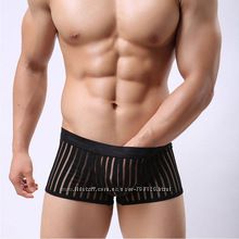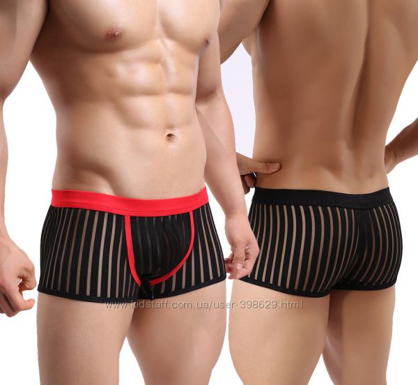 Мужские боксеры в полосочку, полупрозрачные, материал тянетсяРазмер S - черный