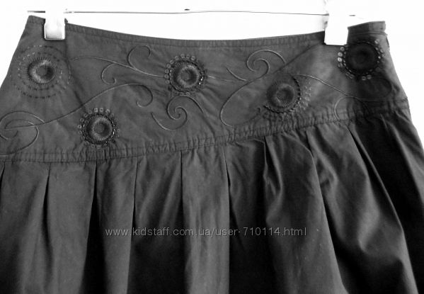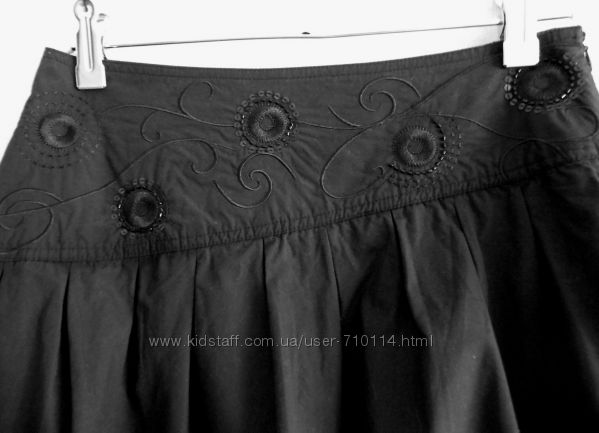 Юбка Xanaka черная баллон с вышивкой и пайетками на подкладке. Ассиметричная кокетка украшена вышивкой и пайетками. Молния в боковом шве. Если пайетки не нравятся можно их отпороть.Длина 50-51 см, ПОТ 37,5 см, ПОБ по подкладке 55 см.Цвет Чёрный