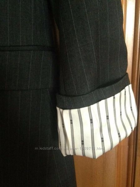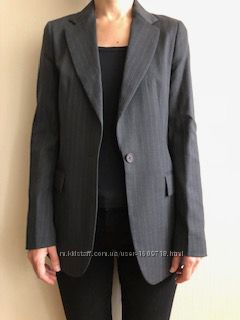 Подробное описание: Жакет, пиджак из тонкой шерсти, темно-серый в полоску. Новый. США