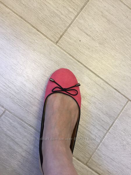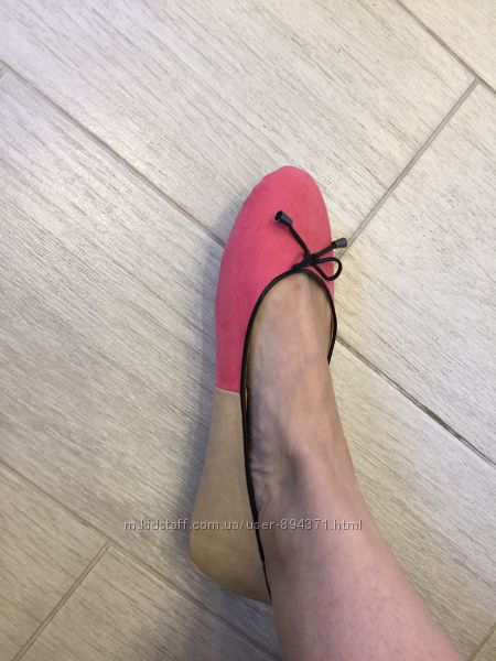 Плато балетки р 39 , стелька 25,5 26 см, кораллоаого цвета спереди ,сзади бежевый цвет, чёрный бантик впереди и чёрная окантовка вокруг. На широкую ногу, Текстиль под замш. Стелька натуральная кожаДругие объявления продавца