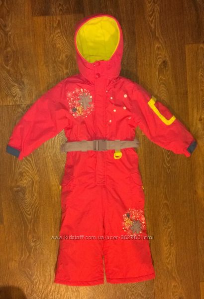 продам очень классный термо-комбинезон D.P.am (Франция). Качество - на высшем уровне! Ярко-розового цвета с контрастной ярко-салатовой подкладкой и яркими рисунками. Очень красивый! Теплый! Идеален для маленьких любителей зимних игр в снегу. Легкий, теплый, прочный и удобный, ветро- и влаго-непроницаемый, благодаря специальной мембране на ткани. Термообмен отличный! Швы проклеены. Внутри штанин внизу - защита от снега. Комбинезончик теплый, на тинсулейте + внутри до пояса утеплен флисом. Талия на резинке. Ширина рукавов и низ штанин регулируется липучками. Основная молния защищена дополнительной планкой на липучках. Комбинезончик очень теплый и удобный! В таком комбинезоне можно спокойно играть в снегу, не переживая, что можно промокнуть или замерзнуть. Комбинезончик смотрится великолепно! В отличном состоянии! Все замочки, липучки, молнии целенькие, рабочие! А малюсенькая потертость в самом низу штанин будет видна только асфальту) Останетесь очень довольны покупкой!Размер указан на 5 лет.