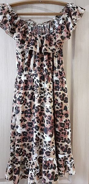 Фото 1-2. Платье в леопардовый принт George размер 12 (46/48) состояние отличное. Состав - 100% хлопок. Волан на резинке, можно опускать на плечи. Очень легкое, просто невесомое платье.