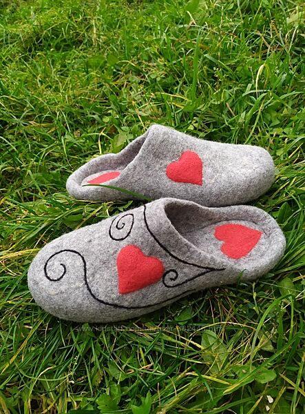 Яркие, теплые тапочки , очень мягкие и приятные к телу. Сделаны из натуральной, полезной для ножек 100% шерсти. В валяной обуви ножки всегда теплые и сухие.Рисунок набит в технике сухого валяния с 3D объемом. Подошва проклеена и подшита микропористой резиной 3мм. 100% Ручная работа .