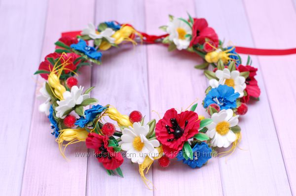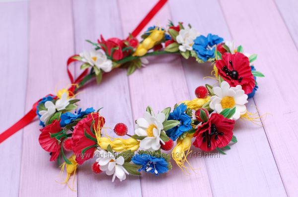 Обруч ободок венок в украинском стиле с маками, васильками и ромашками