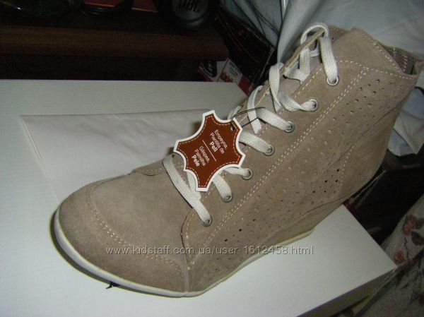 Ботильоны на танкетке демисезонные, кожа-нубук, перфорираванные, танкетка 5 см, стелька 26,5 см, размер 40. Производство Португалия. Покупались в Испании - 690 грнДругие объявления продавца