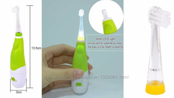 Детская зубная щетка для возрастной группы от 6 месяцев до 4 лет. (Есть также подобные щетки для возраста от 4 до 14 лет).Большое число проведенных клинических испытаний подтвердило, что эффективность применения электрической щетки выше, чем при ручной чистке зубов.