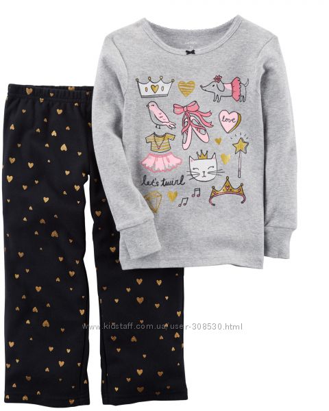 Лучшие пижамы для девочек р. 5,6, 7, 8 Carters СШАФото 1-9 Кофточка (хлопок) + штанишки (флис). Цена 500 грн.