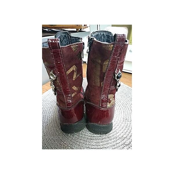 Сапожки девочке, р. 30 ст.18см. натур. лак. кожа, замш. На узкую ножку. Б-у