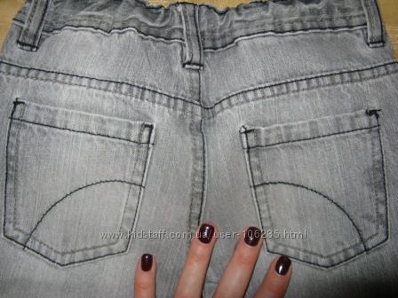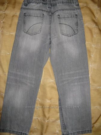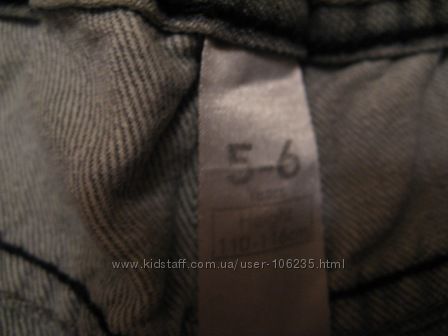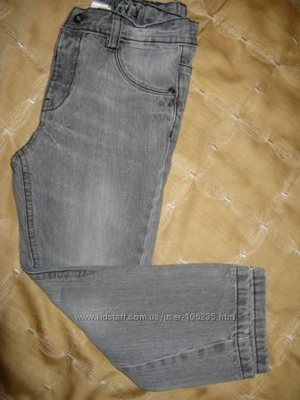 Джинсы фирмы GEORGE, указан возраст 5-6 лет рост 110-116 см. Состав ткани 100 % - котон. Состояние хорошее, есть потертости по низу штанин. Цвет серый.Замеры: длина по боковому шву - 65 см, шаговый - 46 см, полуобъём в бёдрах - 34 см, ткань не тянется, ширина штанины по низу полуобъём - 14-14,5 см, полуобъём пояса максимум - 34 см есть резинка утяжка .