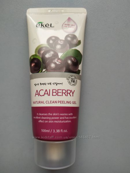 Натуральная пилинг-скатка c ягодами Асаи Ekel Acai berry Natural Clean Peeling Gel Деликатный пилинг скатка для лица с экстрактом ягод асаи, мягко и и эффективно очищает и отшелушивает кожу. Питает и увлажняет кожу. Является самым сильным антиоксидантом в мире. Содержит витамины и полезные вещества для здоровья и молодости кожи. Антоцианины (растительные пигменты), сожержащиеся в асаи уменьшают разрушение клеток кожи, противодействует процессы старения. Как источник жирных кислот, асаи питает и оздоравливает кожу. Фитостеролы регулируют липидную активность верхних слоёв кожи, усиливает кровообращение, что прекрасно сказывается на тургоре кожи и приятном оттенке лица.