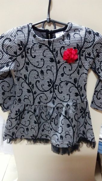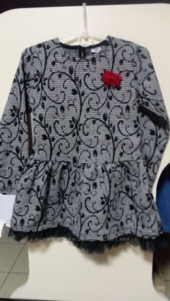Красива сукня - сіра з чорною. Прикрашена маленькою червоною квіточкою. Виробник Туреччина. Тканина сукні щільна. Така сукня підійде на весняно-осінній та зимовий періоди.В наявності розмір: 92