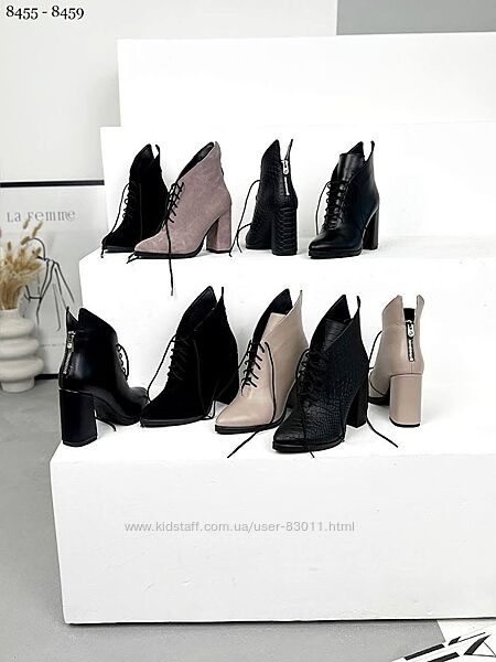 Подробное описание: Новинки. Ботинки, ботильоны на каблуке - только кожа