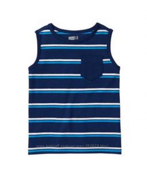 №1 Полосатая бело-голубая майка Crazy8 для мальчика 4-6 лет