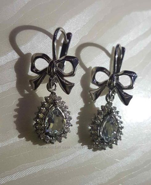 Очень красивые серьги из золота 585 проба с топазами и муассанитами.Серьги выполнены мастером , ювелиром .Проба проставлена .Белое золото 585 пробы.
