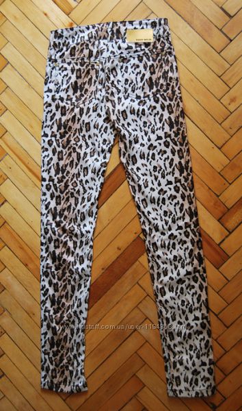 Стильные леопардовые скини. Ткань приятная на ощупь, напоминает шелк. Пуговицы украшены стразами. Указан размер XXS, я носила на S. В идеальном состоянии. Надевались всего пару раз. Дефектов нет, только небольшие царапины на лейбе. Полуобхват талии 36 см. Полуобхват бедер 42 см. Посадка спереди 17, 5 см. Посадка сзади 29 см. Длина 102 см. Шаговый шов 81 см.