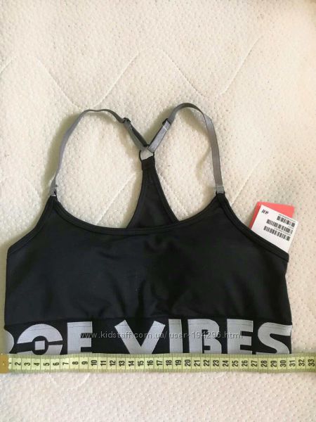 Cпортивный топ (бра) из быстросохнущей функциональной ткани со сформированными чашками и съемными вставками от известного бренда H&M!Узкие регулируемые бретели, на спинке сетчатая деталь, широкий эластичный низ, по низу яркая надпись.