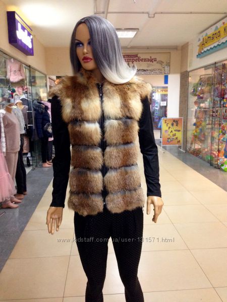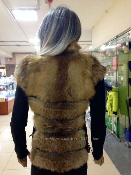 Подробное описание: Жилетка из лисички с кожаными вставками по бокам и утяжкой