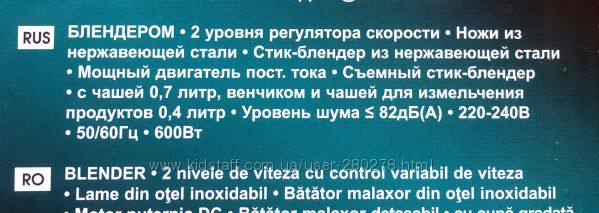 Модель блендера снабжена одной скоростью и турбо-режимом, которые помогают в правильном подборе перемешивания или измельчения. Эргономичной ручкой, для удобства захвата, металлической погружной частью, что делает изделие безопасным при соприкосновении с горячими блюдами.