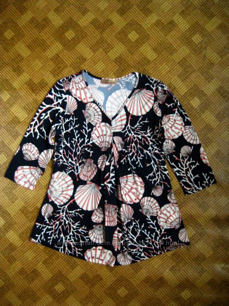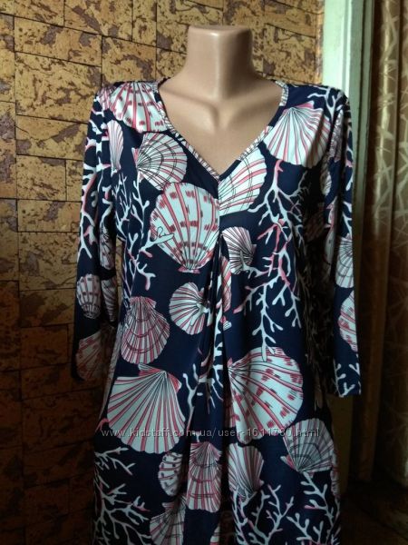 красивая кофта-туника от "Elisabeth Naeem" - указан 40/42Eur - наш 46р. - б/у - в отличном состояниицвет: тёмно-синий + принт ракушки, кораллы