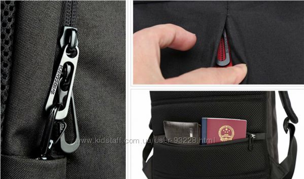 Снаружи, на спинке, есть потайной карман для денег и документов, для быстрого доступа, который не открыть, если не снять рюкзак со спины.