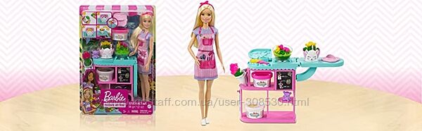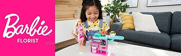 Набор Barbie Florist Playset Барби Лавочка флористаBarbie Florist Playset with 12-in Blonde Doll, Flower-Making Station, 3 Dough Colors, Mold, 2 Vases & Teddy Bear