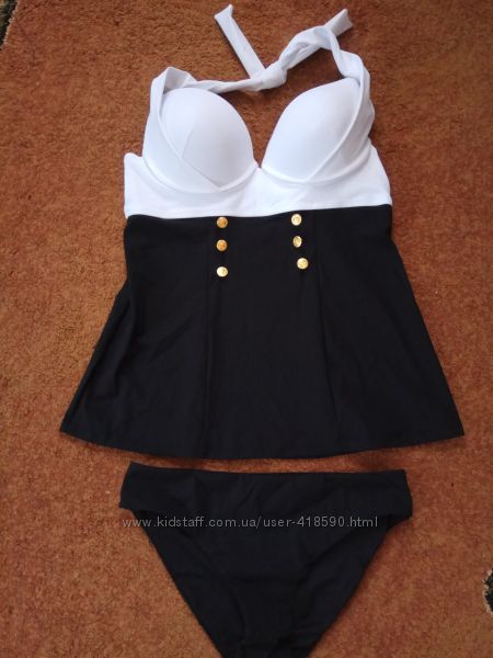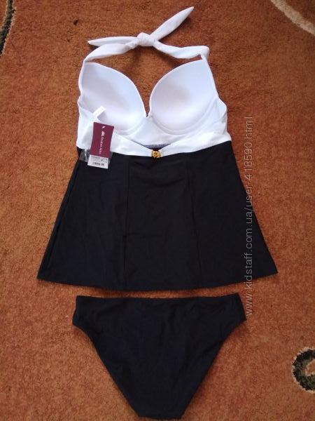 упальник танкини Anabel Arto Стильный купальный костюм-танкини, состоящий из топа и плавок. Топ с формованной чашкой с поролоновым “push-up”, которая поддерживает и выталкивает грудь с боков. Верхние отлетные части завязываются на шее. Плавки со средней высотой бока и низкой линией талии. Состав 72% полиамид и 28% эластан Подкладка 100% полиэстерВ наличии размеры