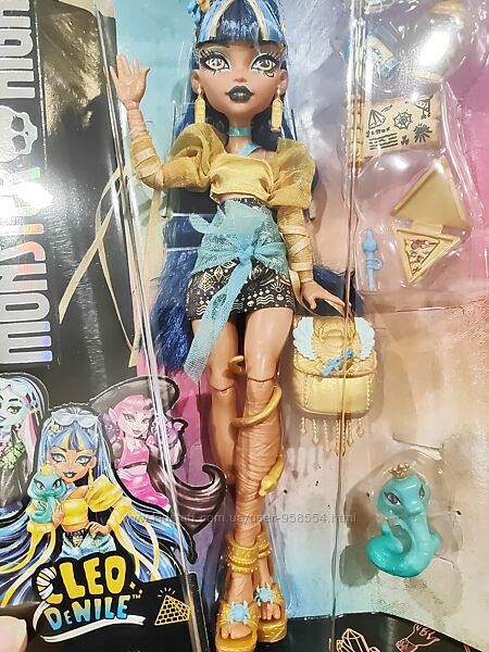 Кукла Монстер Хай Клео де Нил с питомцем Monster High Cleo De Nile with Pet Cobra Hissette Mattel (HXH74) Оригинал Пересылаю УП НП В наличии 1шт Кукла Monster High Клео Де Нил выглядит по-королевски сияющей в роскошном наряде! Она представлена в образе стильной мумии и идет в комплекте с ее верным питомцем - коброй по имени Hissette, а также с аксессуарами, соответствующими ее королевскому статусу. Одежда этой мумии выполнена в золотой цветовой гамме, включая мерцающую блузку с лентами-мумиями на рукавах, многослойную юбку с иероглифами, а также украшения в виде змеиной ноги и сандали-скарабеи. Даже ее питомец-змея Хиссетт выглядит как настоящая королева змей с миниатюрной короной из золота! Кукла предлагает бесконечные игровые возможности, а также разнообразие аксессуаров для творчества, таких как блестящий рюкзак в виде скарабея, мумифицированное сердце в банке, древний свиток, ручка, пицца в пирамидальной коробке, солнцезащитные очки и сар-кофе-гус.