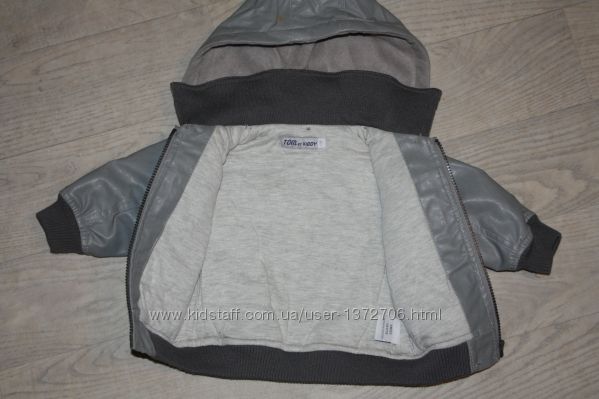 Модненькая ф. TOM курточка на мальчишку 6/9мес в отличном состоянии,внутри котоновая подкладка,рукава на манжетах,простеганный внутри между подкладкой и верхом слой синтепона.длина-34,плечи-27,рукав о плеча-23,ширина внизу-26,ширина от подмышек-30см