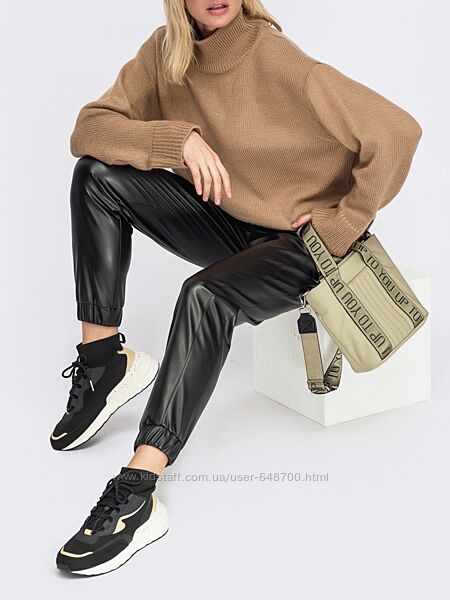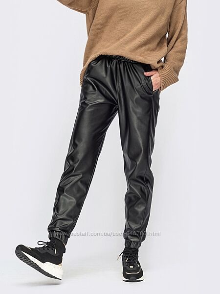 Утепленные кожаные брюки-джоггеры черныеПроизводитель: Украина