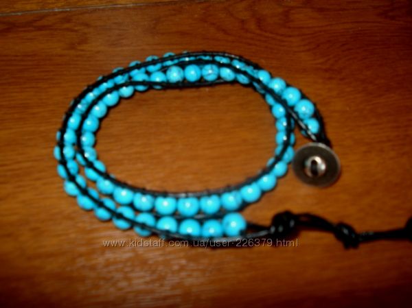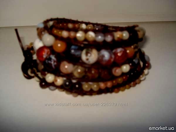 Самый модный браслет по мотивам известного дизайнера CHUN LUU.Эти браслеты сегодня очень популярны среди звезд Голливуда и богатой американской молодежи.Стоимость такого браслета от 150 евро,в зависимости от камней и длины браслета.Спешите быть модными.Фото №1 Браслет выполнен на кожаном шнуре,камни натуральные,некоторые граненые,за счет этого браслет красиво сверкает(агат,оникс,перламутр,яшма,гранат,нефрит жадеит).Длина браслета 100 см(на 5 оборотов вокруг кисти).На фото,где нить растянута,цвета настоящие.Цена 450 гр. Продан.
