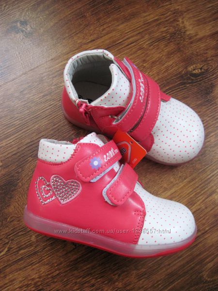 Классные демисезонные ботиночки для самых маленьких модниц! Внутри натуральная КОЖА, стелька с супинатором, жесткий задник.Застёжка молния, полнота регулируется двумя липучками.
