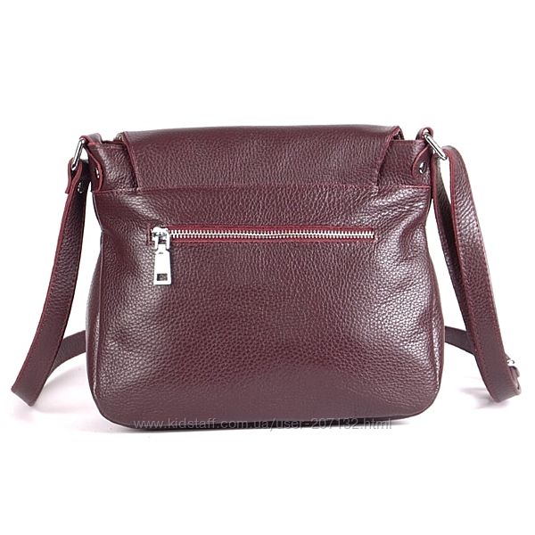 Зовнішні кишені: з торцевого боку сумочки і на клапані; блискавка на клапані прикрашена двома китицями (можливий варіант без китичок). Всередині одне основне відділення, врізна кишеня на блискавці і відкрита для дрібниць.